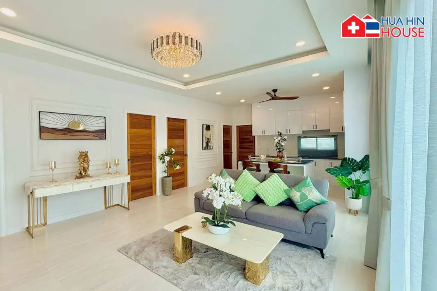 Entdecken Sie modernes Wohnen in dieser wunderschön gestalteten, brandneuen Poolvilla in einer der gefragtesten und am schnellsten wachsenden Wohngegenden von Hua Hin.